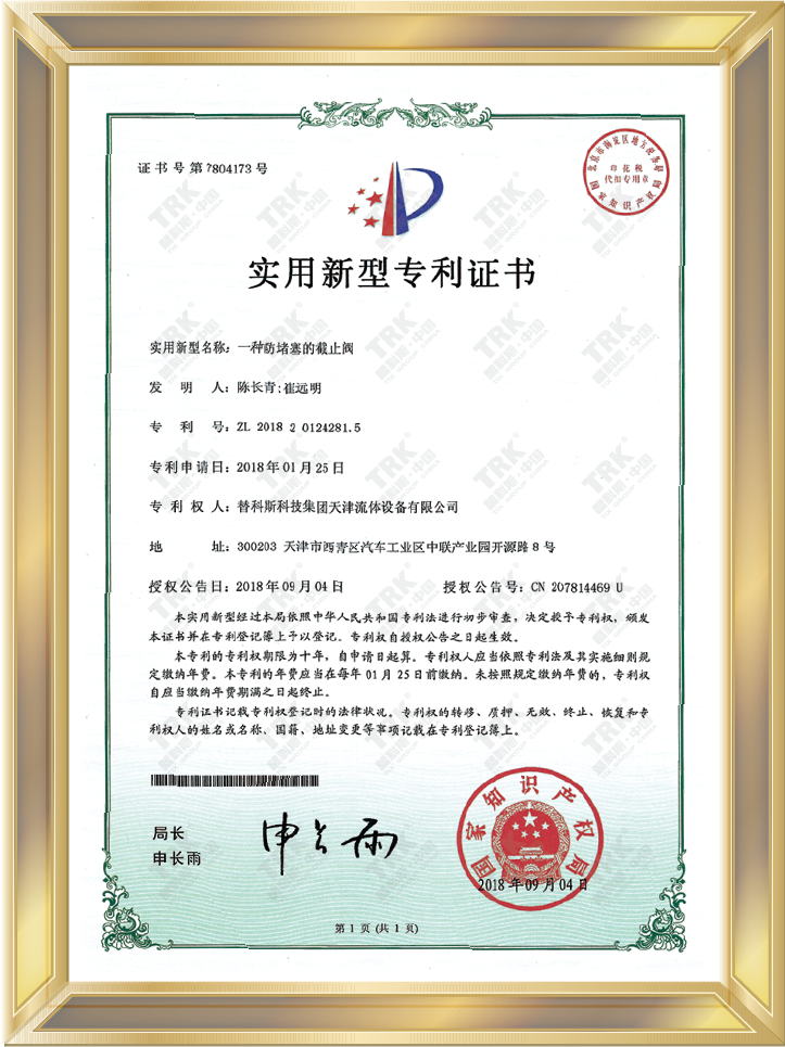 特種設備型式試驗證書-截止閥