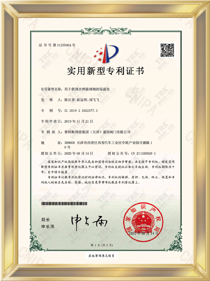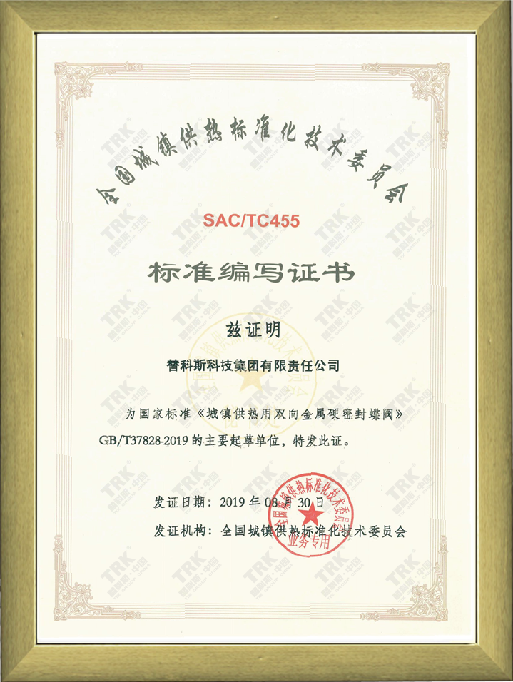 標準編寫證書-城鎮供熱用焊接球閥