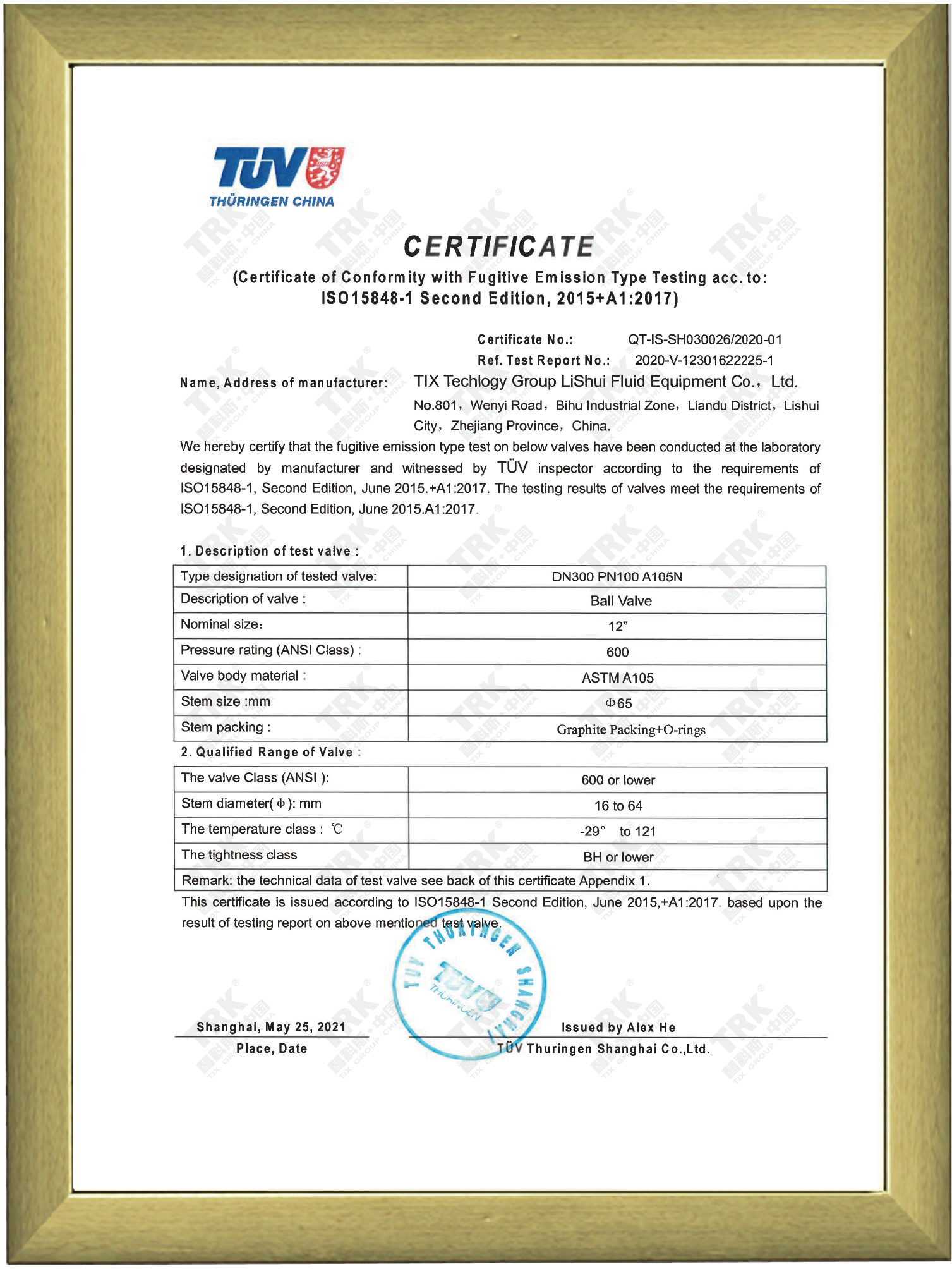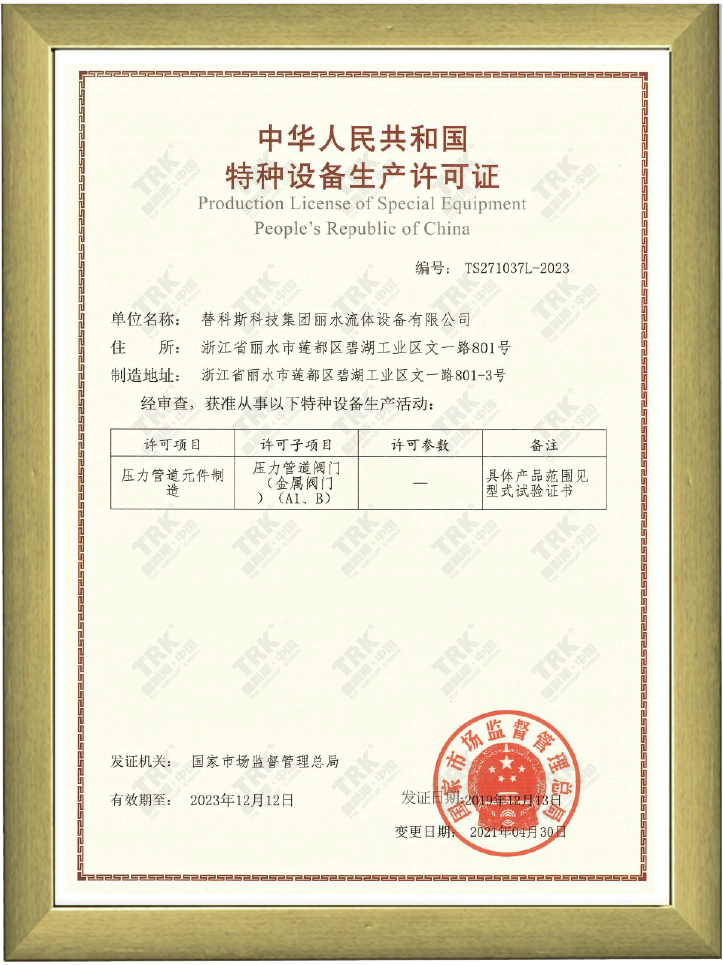 特種設備型式試驗證書-球閥