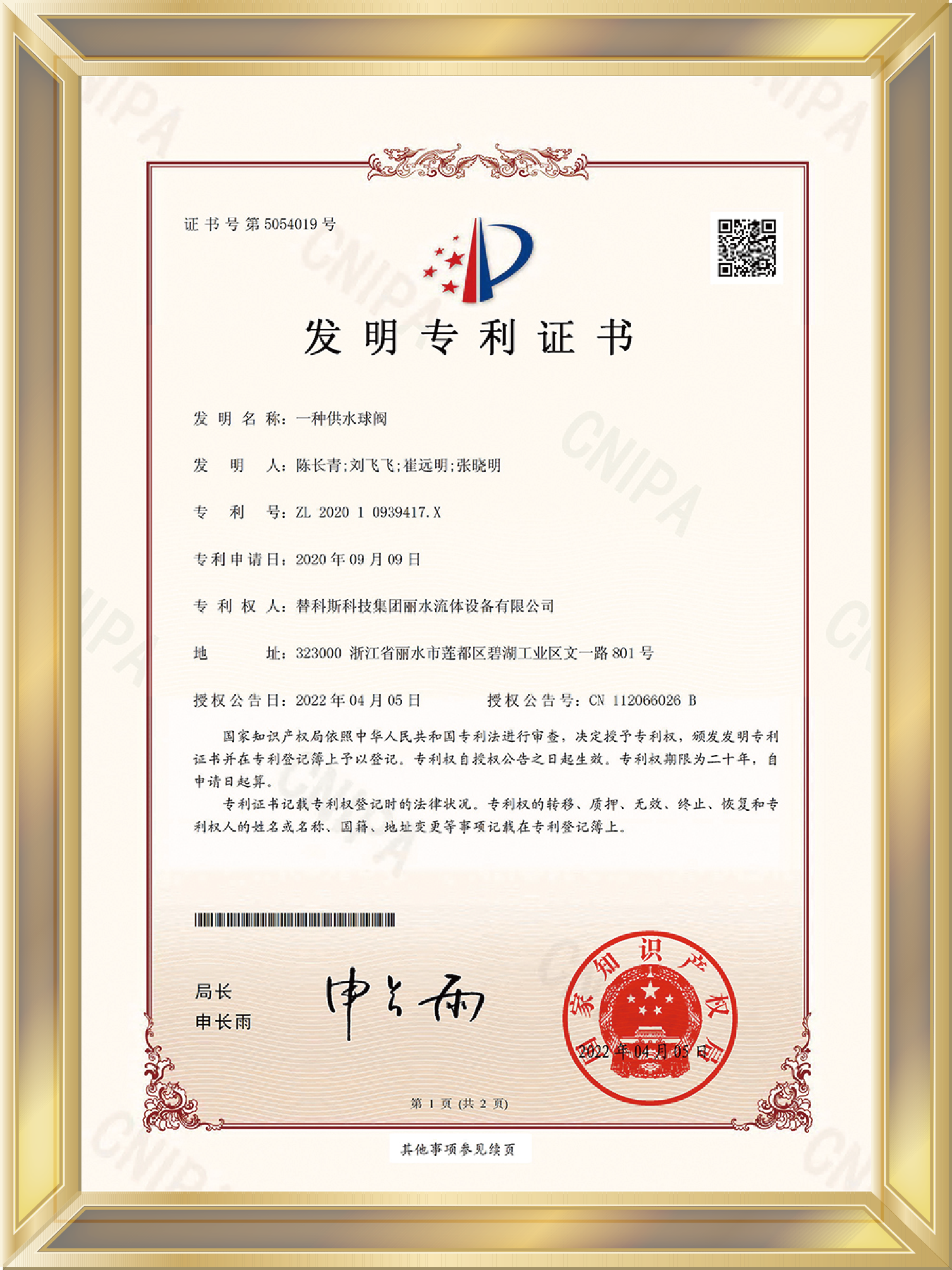 知識產權管理體系認證證書